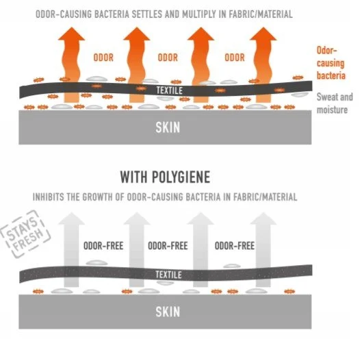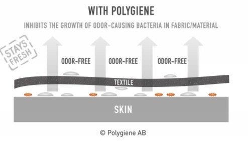 Polygiene was created in 2006, their goal was to successfully prevent the spread of viruses and bacteria which often find themselves on surfaces in areas such as hospitals and public spaces. From the start Polygiene have had one goal, to help the environment and to this day have stuck to it. As the years went on, they started to develop new technologies that would achieve this goal. Their Stays Fresh technology can be applied to clothes and in the long run drastically help with their durability and help the garments stay fresh. This amazing technology allows us to wash the garments significantly less, and still keep it fresh and clean, aligning with their motto -